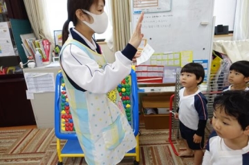 今日は、あいにくの雨で幼児(3・4・5歳児)は