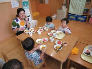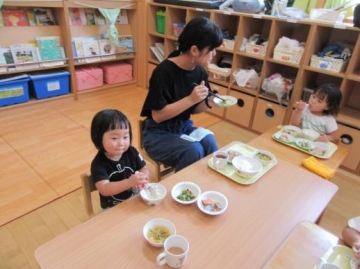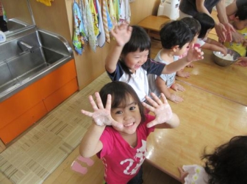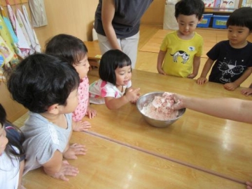 絵本読み・小麦粉ねんどあそび・給食・・・・