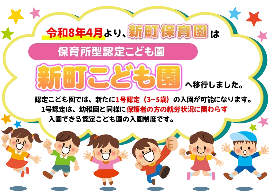 ![]() 3歳以降は新町第2こども園へ編入となります。 | ||