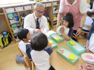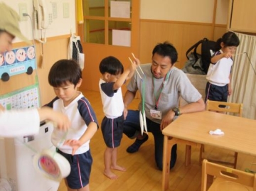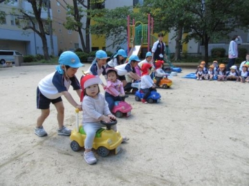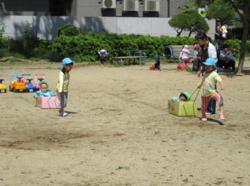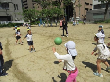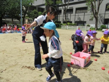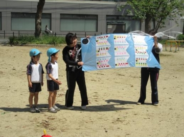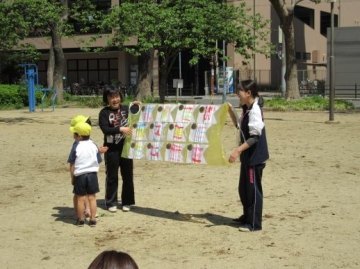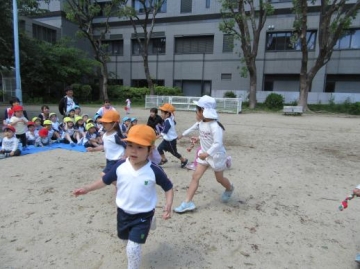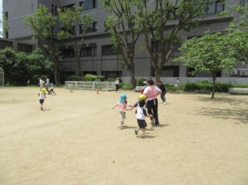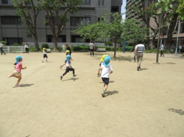 公園に出て、しっぽ取りゲームをおうちのかたとたのしみました。