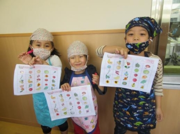 炊きあがる眼での時間、野菜ビンゴゲームをしました!