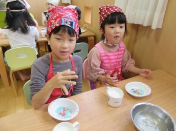 水で手を濡らしたけど、いっぱいご飯がついてしまいました!