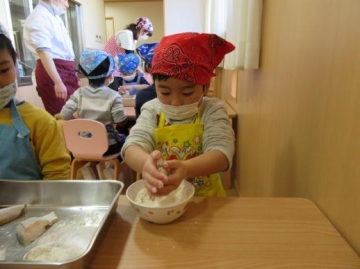 本日の給食!*たらのムニエルに小麦粉をまぶして