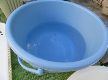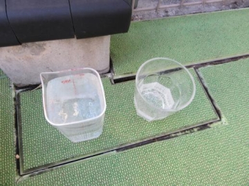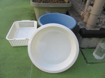 ぱんだ組のお友だちが屋上に昨日から水を置いてみました
