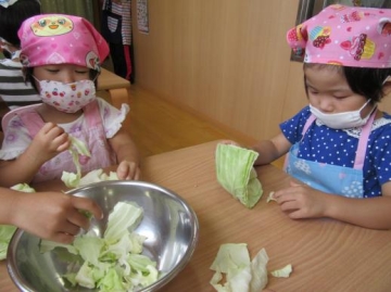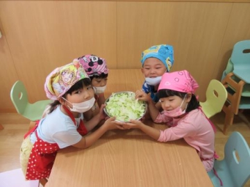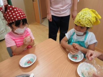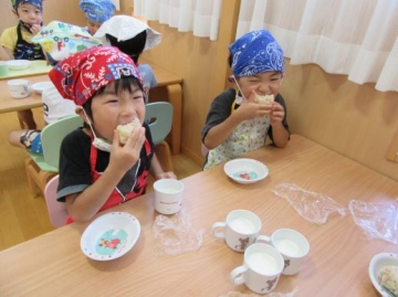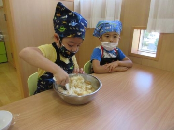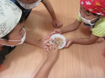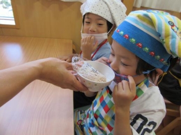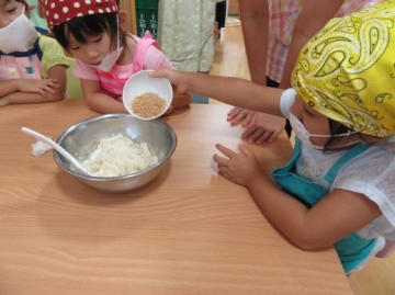 いい匂いをかいで、みんなでごはんに混ぜました。