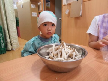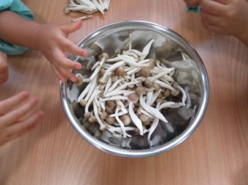 小さなしめじが、きになり「あかちゃんのしめじや!」