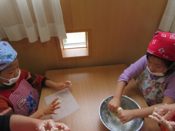 小麦粉・ベイキングパウダー・油・お湯・砂糖・をまぜて