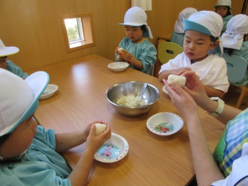 おにぎりは2回目なのでとても上手にぎゅっぎゅっ!