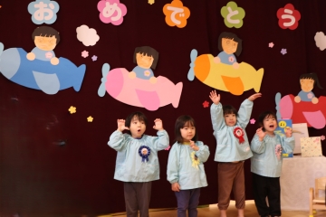 3月生まれのお友達の紹介をし、保育士による「どんないろがすき🎵」の