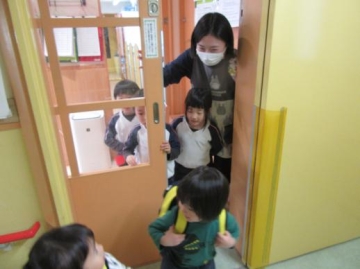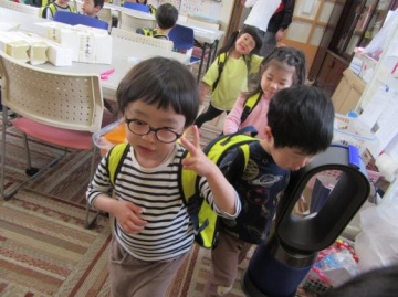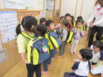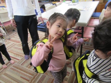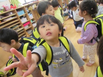 今日からリュックサックを背負って登園しました。