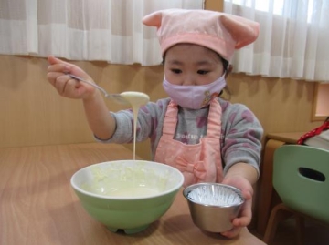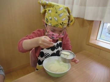 生地をこねて容器に