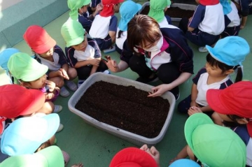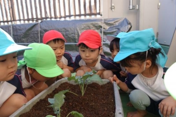 食育活動で、ブロッコリー・ほうれん草・はつか大根の『種と苗』を植えました。