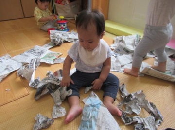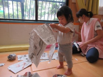 2023年9月22日(金) 新聞紙で遊んだよ!