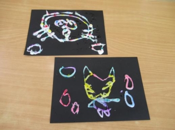 画用紙にボンドで絵を描き