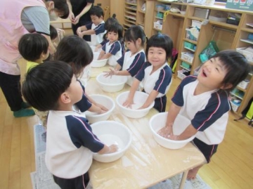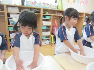 片栗粉粘土の感触を