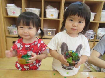 みんなで『寒天遊び』をしました。