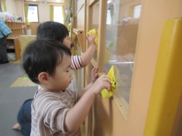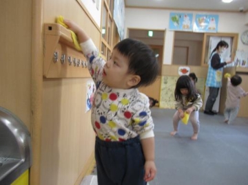 最後の日にさくらんぼぐみ(1歳児)も、一生懸命『大掃除』をしてくれました。
