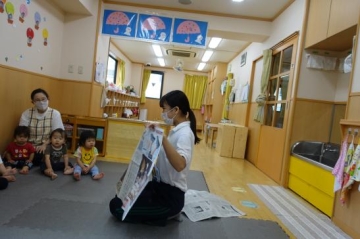 絵本読みをし、新聞紙を使い、