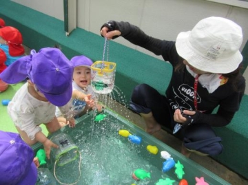 幼児クラスが、さかなつり、ボーリング、わなげ屋さん