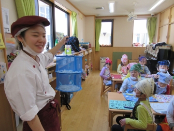 給食の先生に見守られ!いただこま~す!!