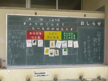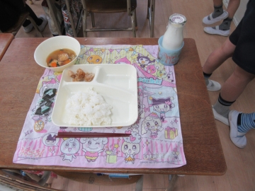 お当番の人が重い牛乳を運んだりご飯を運んだり