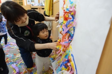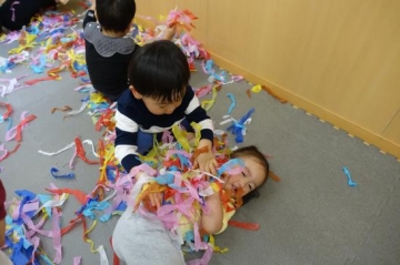 お部屋で紙遊びました。