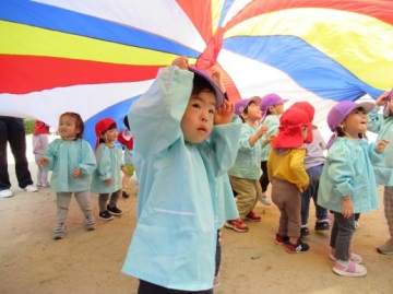 パラバルーンや玉入れなどいっぱい遊んで、