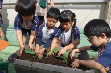 『屋上で菜園活動』