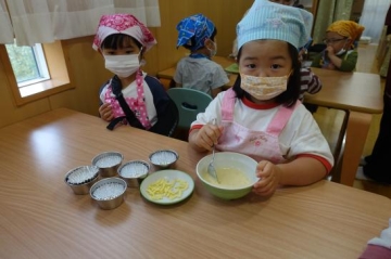 『コーンチーズ蒸しパン作り』
