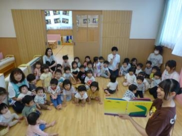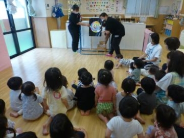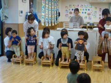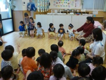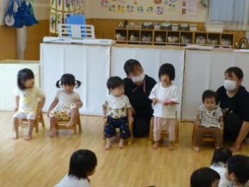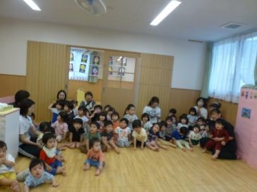 今日は8月のお楽しみ会に乳児クラス・幼児クラスに分かれて8月生まれの友達をみんなでお祝いをしました。