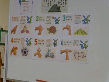 最後に手洗いの6つのポーズでできる洗い方を教えて頂き、必至に両手を動かしていた子どもたち・・・