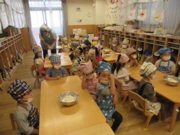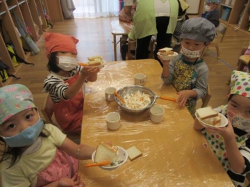 2021年10月21日(木) 食育・すみれ組、フルーツサンドづくり!!