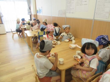 焼くのは給食の先生たちがしてくれました。