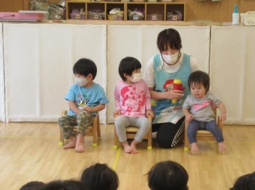 5月・6月生まれのお友達を紹介しました。照れながらも、○○歳になりましたと上手に言っていましたよ!!