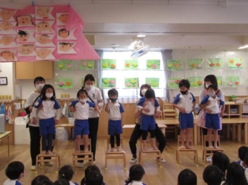 乳児組・幼児組に分かれて、4月生まれのお友達をお祝いしました。