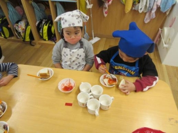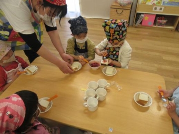 2021年1月28日(木) 3歳児食育ジャムサンドを作りをしました。