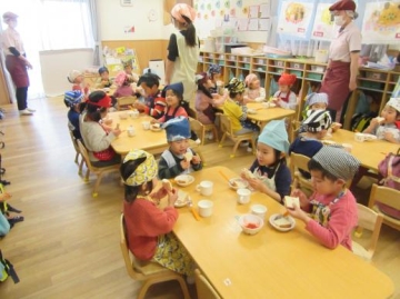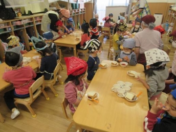みんなぬれたら、「いただきます」と大きい声で言って嬉しそうに食べていました。