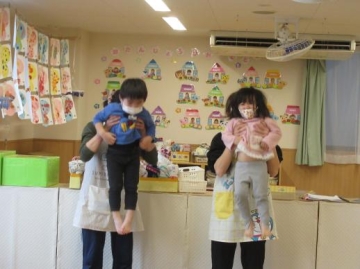 その後、乳児さんは「帽子をとったら」で、コックさんの帽子をとったらオムライスだったり、女の子の子の帽子をとったら、
