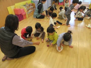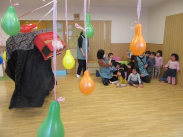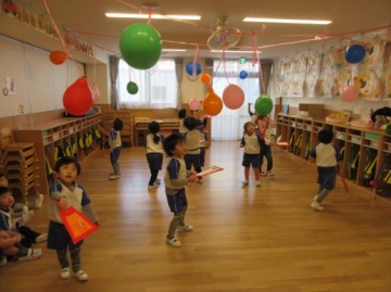 1歳児クラスと2歳児クラスは、お部屋を広くして、幼児さんは、各クラスでお誕生会をしました。