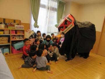 キャーと叫ぶ子。泣く子もいましたが、みんながすくすく成長しますように!!と頭を噛んでいただき