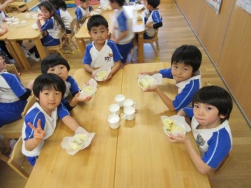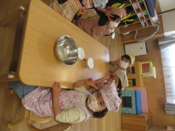 20日(水)4歳児クラス(さくら組)お昼から大根もちを作りました。