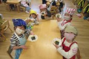 海苔を巻いて・・・「わー!!美味しい」と、ニコニコ顔で食べていましたよ。(^^♪
