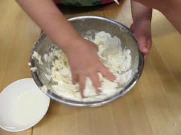 その後小麦粉を入れて練り、団子状態にするのですが、手にくっつき(’◇’)ゞ悪戦苦闘していましたが