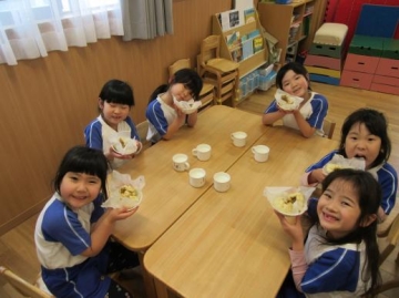 2021年1月28日(木) 5歳児クラス食育”肉まんを”づくりをしました。