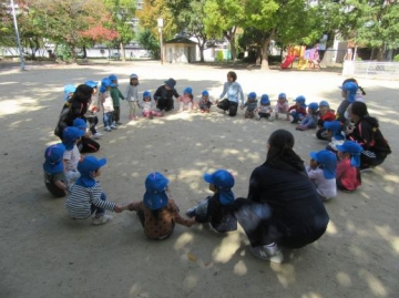 ”ぽっとん”は、みんなで手をつないで輪になり名前を呼ばれると座るのですが、