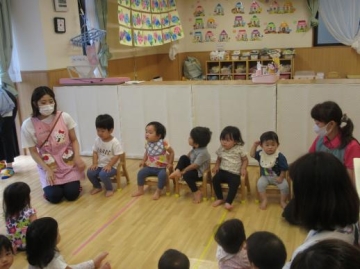 今日は、乳児・幼児に分かれて、8月生まれのお友達のお祝いをしました。