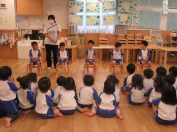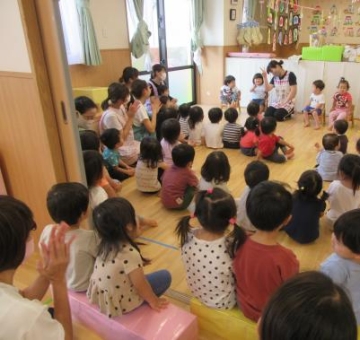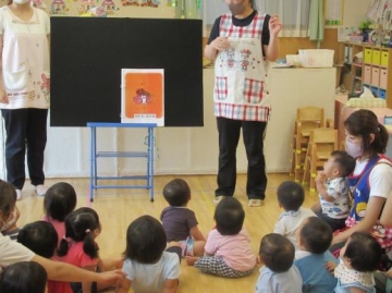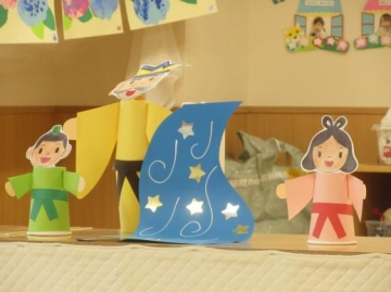 「たなばた」のペープサートを目をパチパチさせながら、しっかり見ていました
