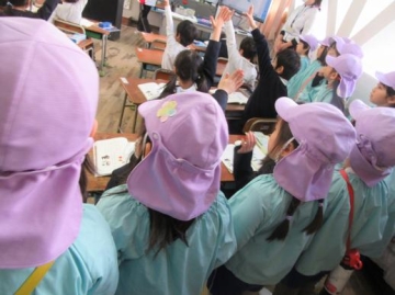 他の幼稚園からも参加していて、1年生の教室の授業風景を見学してきました。