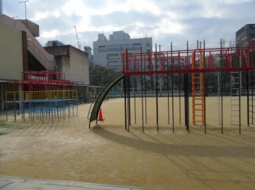 中庭や校庭もあり珍しい遊具なども見てきました。あいにくの天気で外には出れず・・残念でしたが・・・