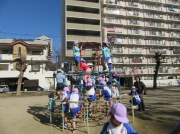 ドッジボールや日吉公園の遊具(太鼓橋・ジャングルジム・鉄棒など)で遊んで交流し、楽しく過ごすことが出来ました。。